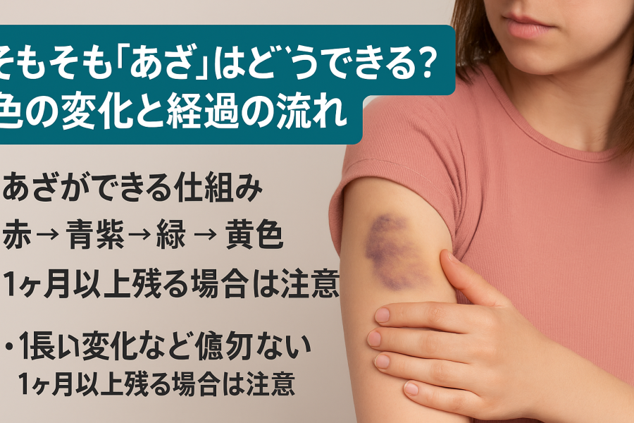あざは多くの場合、時間の経過とともに薄くなると言われています。ただ、中には「ちょっと気をつけたほうがいいかもしれない」と指摘されるケースも存在します。ここでは、医療系サイトでも注意サインとして紹介されているポイントを会話形式で整理していきます。