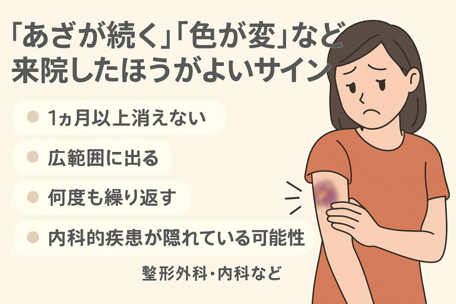 「あざが続く」「色が変」など来院したほうがよいサイン