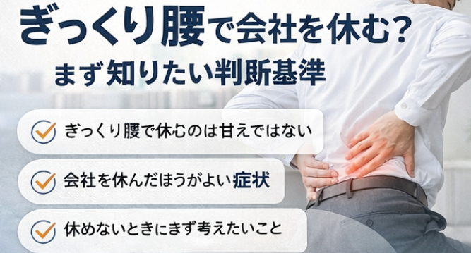 #ぎっくり腰会社休む #ぎっくり腰仕事 #腰痛で欠勤 #会社を休む判断 #急性腰痛
