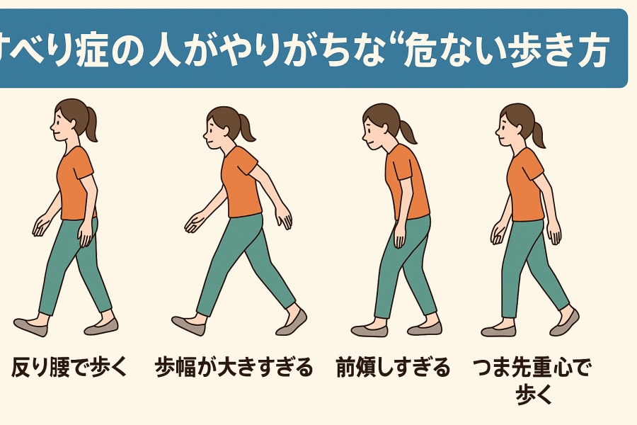 こう話される方はとても多く、上位サイトでも 反り腰で歩くクセはすべり症の負担を強めやすい とよく紹介されています。