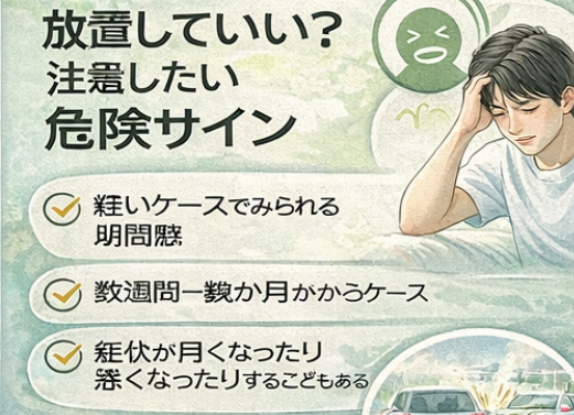 #むちうち危険サイン #吐き気が続く #頭痛 #しびれ #早めの来院