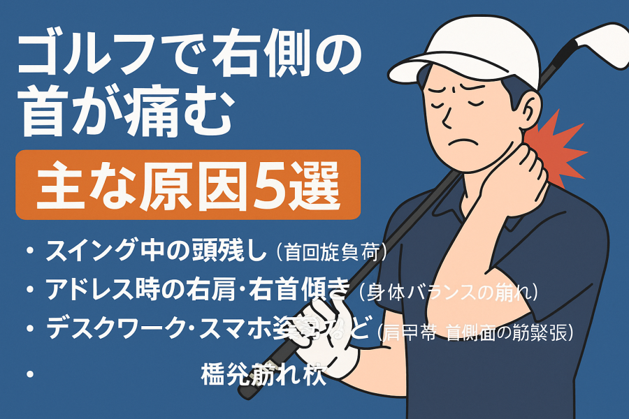 「ゴルフ中に右側の首だけ痛い…何で?」