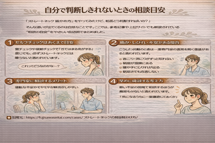 こうした感覚から、ストレートネックを疑う人も少なくないようです。
