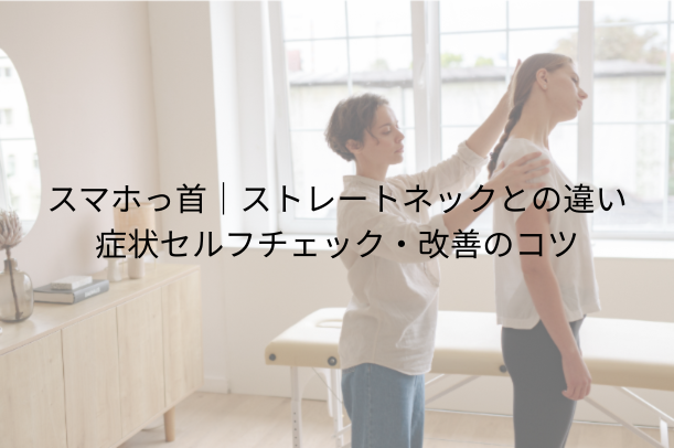 ここを分けて考えると、対策も組み立てやすいです。スマホっ首は“日常の姿勢・時間”を見直す方向、ストレートネックは“首にかかる負担が続いた結果としての状態”を意識する方向、という考え方につながりやすいと言われています。まずは「スマホを見る位置が低いかも」「気づくとあごが前に出るかも」と、自分のクセを1つ見つけるところから始めるのが現実的です。