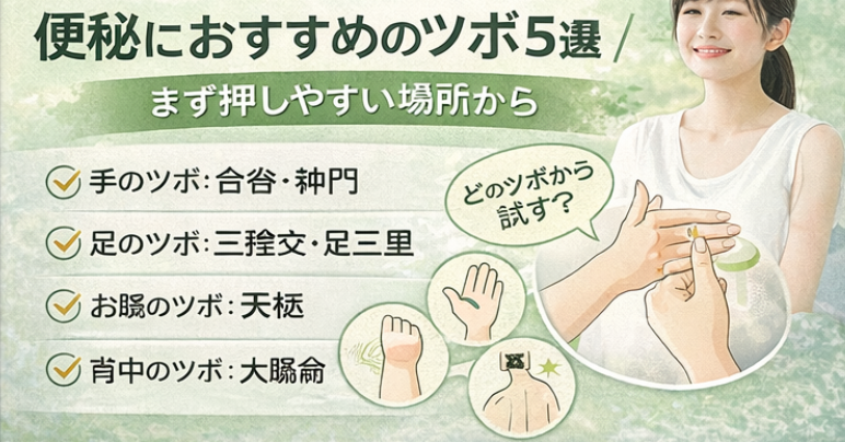 便秘におすすめのツボ5選|まず押しやすい場所から