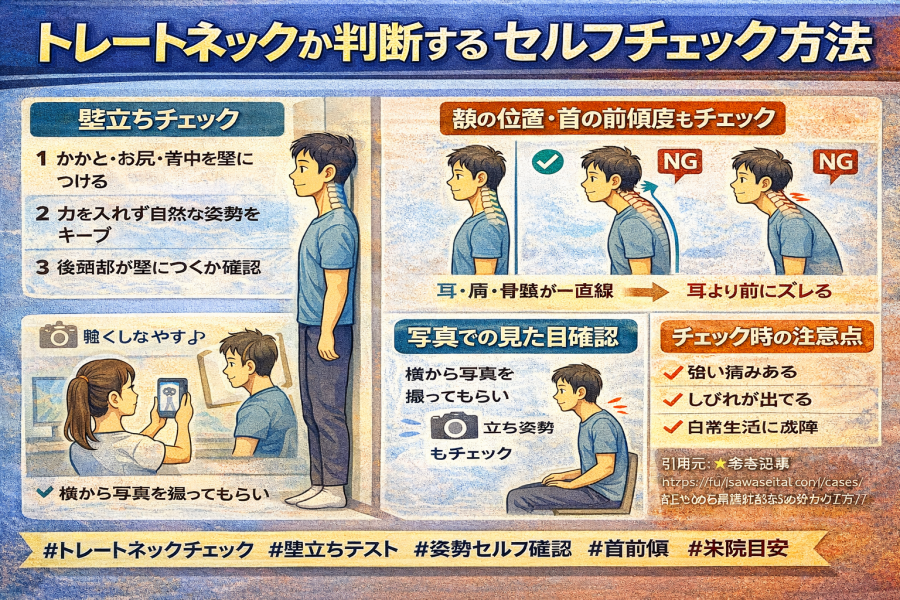 こんな特徴があれば、トレートネック傾向の目安になるとも紹介されています。