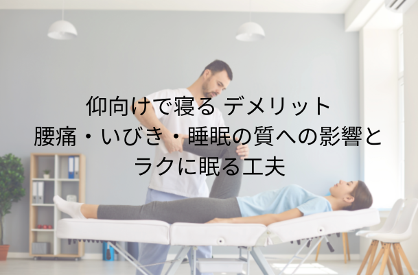 湘南カイロ茅ヶ崎整体院などの解説では、仰向けで寝る デメリットとして、「腰が浮いたまま長時間同じ姿勢でいると、腰まわりの筋肉が過緊張になりやすい」と指摘されています。