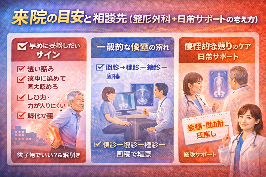 来院の目安と相談先(整形外科+日常サポートの考え方)