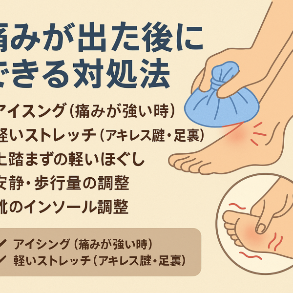 タオルを薄く敷く・インソールを交換するだけでも負担が変わる場合があります。