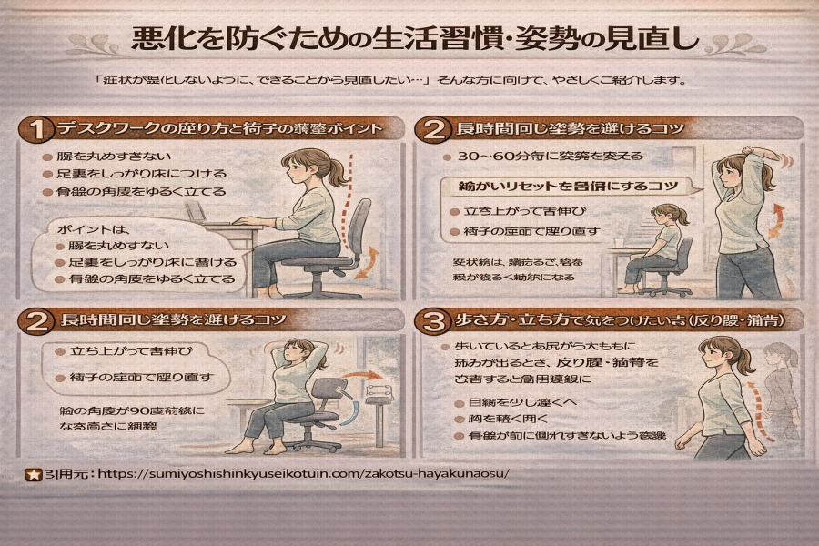 悪化を防ぐための生活習慣・姿勢の見直し