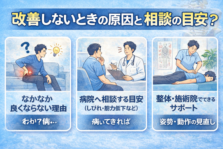 つまり、「一時的に楽になっても、生活の中で同じ負担が続けば戻りやすい」という状態になりやすいのです。