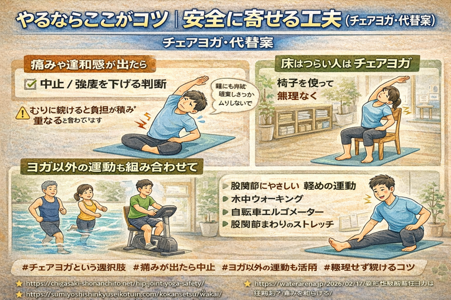 #変形性股関節症ヨガ #チェアヨガという選択肢 #痛みが出たら中止 #ヨガ以外の運動も活用 #無理せず続けるコツ