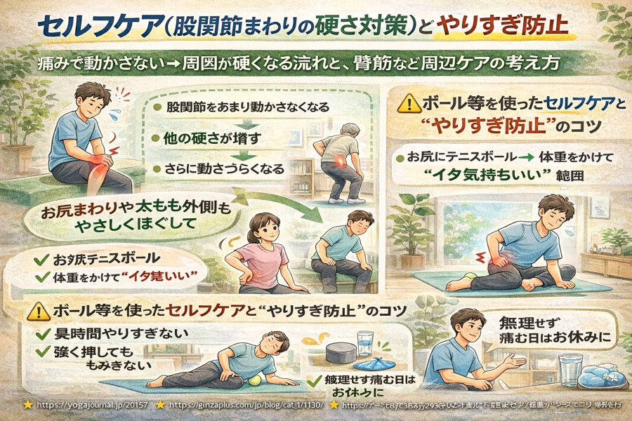 セルフケア(股関節まわりの硬さ対策)と“やりすぎ防止”