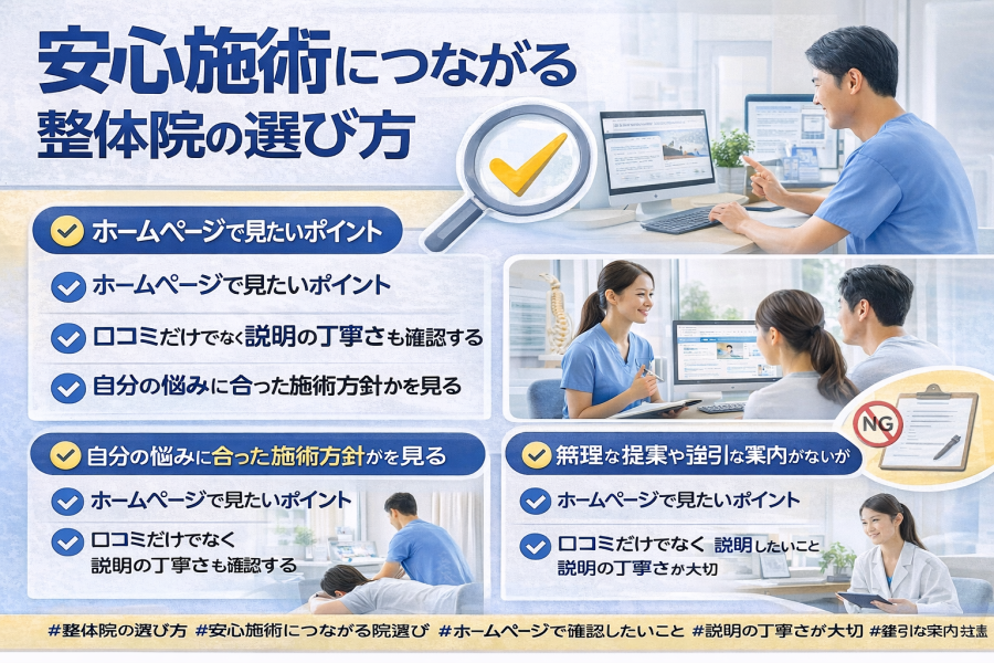 #整体院の選び方 #安心施術につながる院選び #ホームページで確認したいこと #説明の丁寧さが大切 #強引な案内に注意