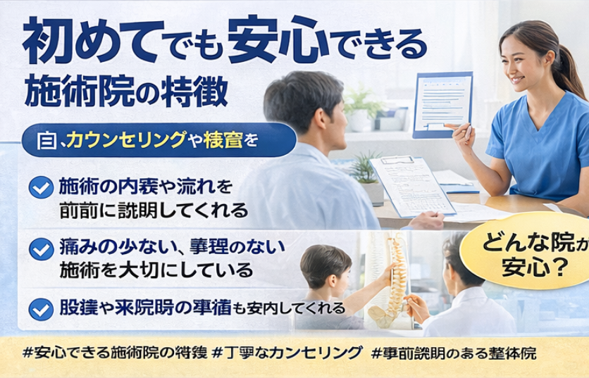 #安心できる施術院の特徴 #丁寧なカウンセリング #事前説明のある整体院 #無理のない施術 #服装案内も安心材料