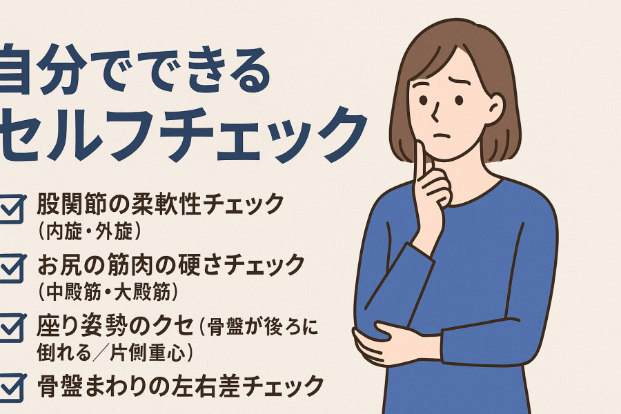 そんな声をよくいただきます。実際、体のクセや柔軟性を簡単に確認するだけでも、負担がかかりやすいポイントのヒントが見えてくると言われています。ここでは誰でもできるセルフチェックを、会話形式で分かりやすくまとめました。