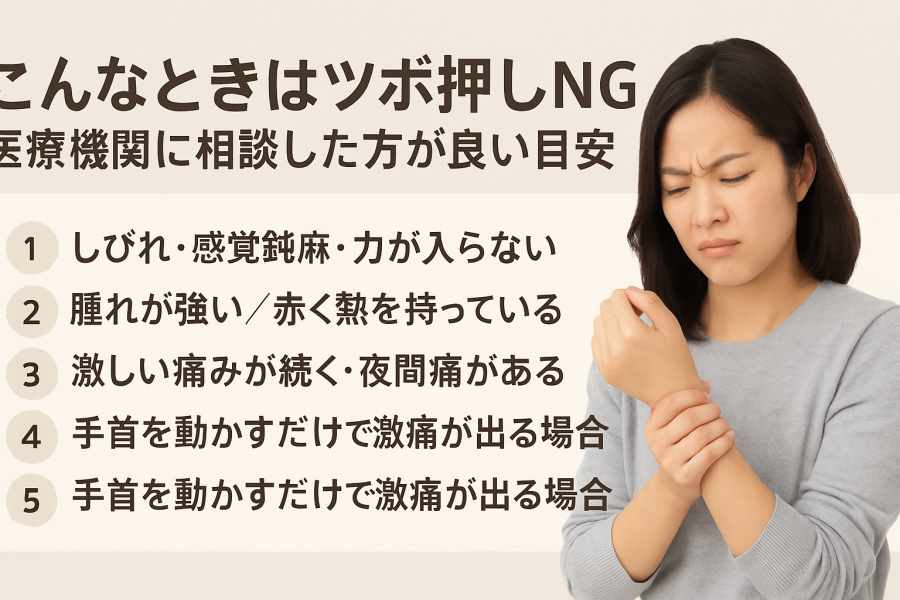 #手首のツボ #手首の痛み #しびれの注意点 #ツボ押しの目安 #来院時のポイント