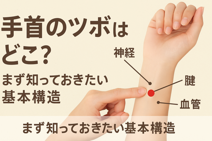 「手首のツボって、どこを押せばいいの?」と聞かれることがよくあります。実は、手首には関節・腱・血管・神経が密集しているため、ツボの位置も探しやすいと言われています。 まずは構造を軽く知っておくと、安全に押しやすくなるんですね。