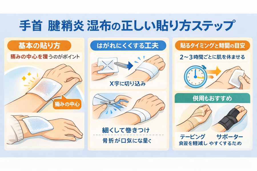 手首 腱鞘炎 湿布の正しい貼り方ステップ