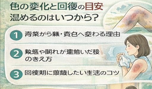 #内出血の色 #温めるタイミング #回復期 #あざの変化 #跡が残る