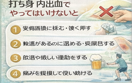 #揉まない #温めない #飲酒を控える #激しい運動NG #打撲の注意点