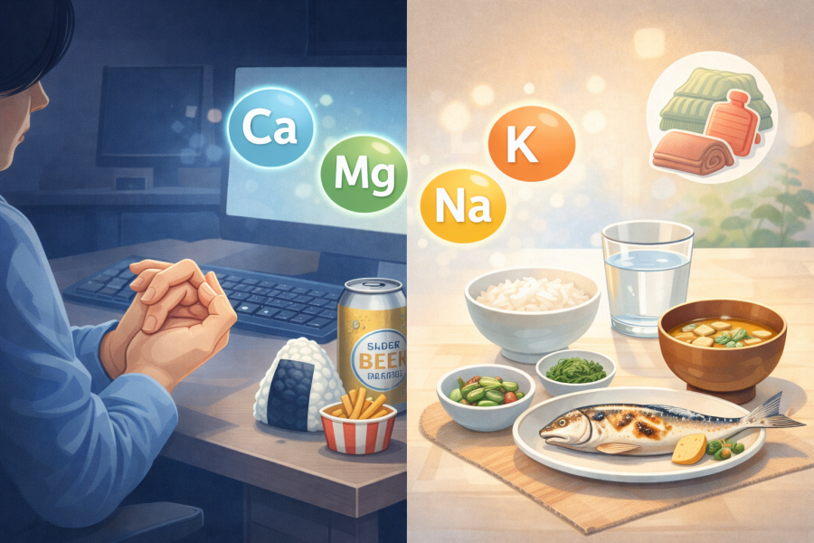 「日中は平気なのに、寝ているときだけ指がつるんだよな…」という方は、水分・ミネラル・冷え対策の3つをセットで見直してみると、体の感覚が変わってくる場合もあるようです。