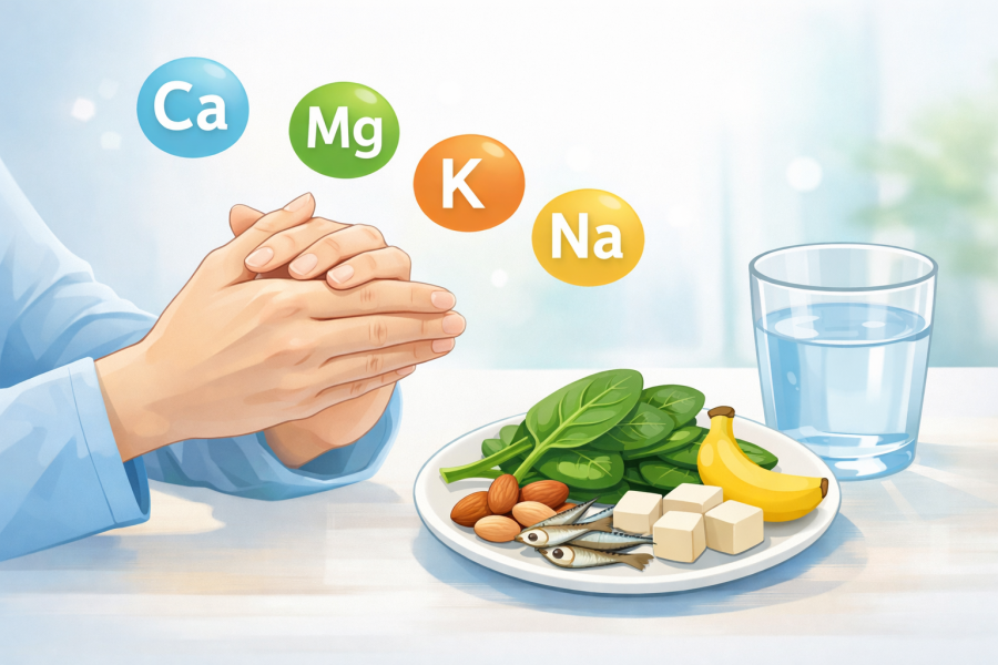 こうした相談を受けることがよくあります。もちろん理由はひとつではないと言われていますが、その中でも「ミネラルやビタミン、水分バランス」が土台としてとても大事だと考えられています。ここでは、まず体の中でどんな栄養素が関わっているのかを、ざっくり整理してみましょう。