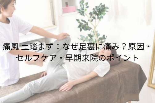 読者が検索する意図(例:「痛風で土踏まずが痛むの?」「土踏まずだけ痛いのは何が原因?」「自宅でできるケアは?」「病院に行くべき?」)