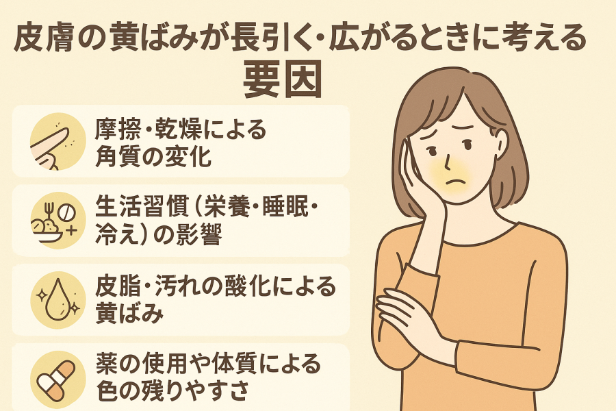 皮膚の黄ばみが長引く・広がるときに考えられる要因