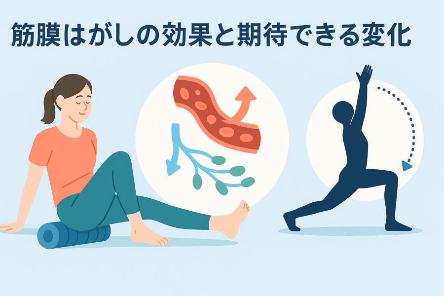 筋膜はがしを行うと、筋膜のこわばりが和らぎ、血流やリンパの流れが促されると言われています。循環がスムーズになると老廃物の排出がスムーズになり、体の重だるさやむくみの軽減につながる可能性があります。特に、デスクワークや立ち仕事で同じ姿勢が続く方は、筋膜の柔軟性を取り戻すことで疲労が抜けやすいと感じるケースもあるようです(引用元:https://www.krm0730.net/blog/2438/)。