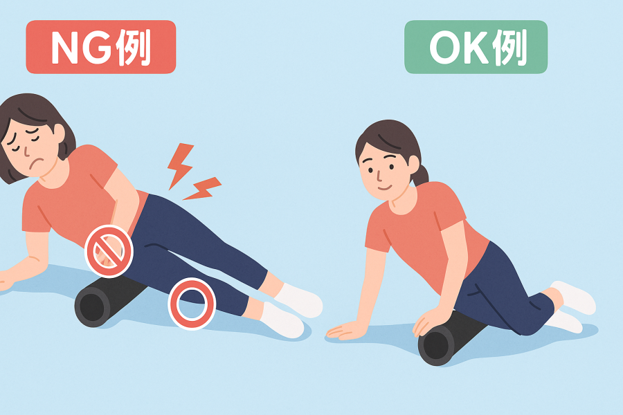 部位ごとに意識するポイントも異なります。肩や背中では、肩甲骨まわりを中心にローラーを転がし、呼吸を止めずにリラックスしながら行うことが大切です。太ももやふくらはぎは大きな筋肉なので、圧が強くなりすぎないように少しずつ移動させるのがコツです。また、背骨やひざなど骨が突出している部位に直接ローラーを当てるのは避ける必要があります。sakaguchi整骨院の情報でも、筋肉の厚みがある部分をターゲットにすると安全に続けやすいと紹介されています(引用元:https://sakaguchi-seikotsuin.com/)。