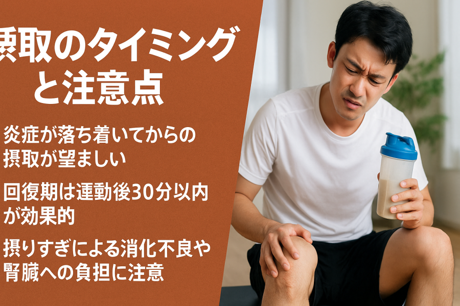 損傷直後よりも炎症が落ち着いてから摂取が推奨されることが多い