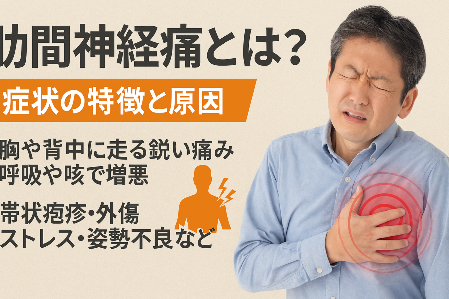 肋間神経痛とは、肋骨に沿って走る神経が刺激されることで起こる痛みを指すとされています。胸の片側や背中に突然「鋭い痛み」が走るのが特徴で、息を大きく吸ったり、咳やくしゃみをすると痛みが強くなることも少なくありません。症状が軽いときは一瞬の違和感で済むこともありますが、慢性的に続く場合は日常生活に大きな負担を感じる方もいるようです。