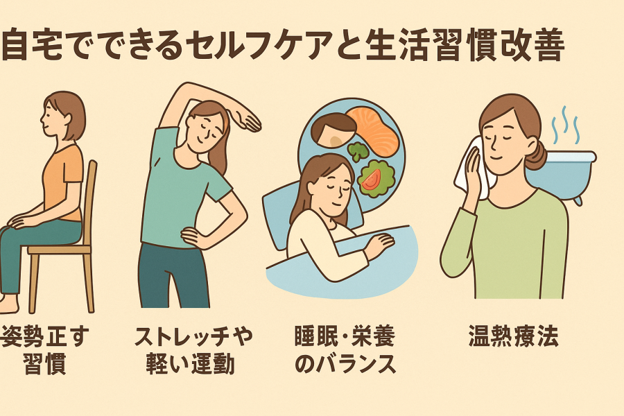 痛みが強いときには、温めることで血行を促進し筋肉の緊張をやわらげることがあるとされています。入浴や蒸しタオル、カイロを使った温熱ケアは、自宅で簡単に取り入れられる方法です。ただし炎症が疑われる場合には避け、体調や症状に合わせて取り入れるのが安心です