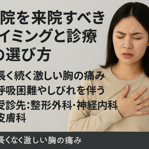 肋間神経痛のような症状が出ても、多くの人は「そのうち良くなるだろう」と自己判断しがちです。しかし、放置すると危険なケースもあるため、来院の目安を知っておくことが大切だと言われています。ここでは、症状が重い場合の受診タイミングと適した診療科について整理します。