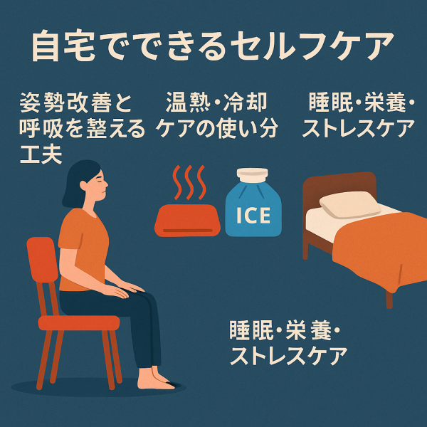 肋間神経痛に熱感を伴う場合でも、日常生活の中で工夫できるセルフケアがあるといわれています。症状を和らげる取り組みを習慣にすることで、体の緊張が緩みやすくなると考えられています。ここでは、自宅で実践しやすいケア方法を紹介します。