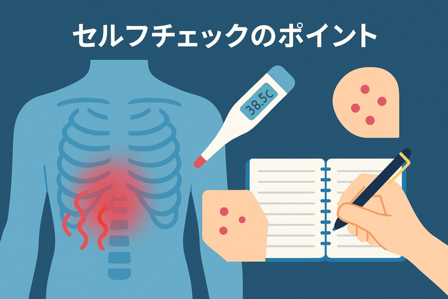 肋間神経痛に「熱感」を伴うとき、自分でできる確認の工夫を知っておくと安心につながるといわれています。症状の程度や特徴を整理しておくことで、医療機関に相談する際の目安にもなりやすいとされています。ここではチェックしておきたいポイントを3つ紹介します。