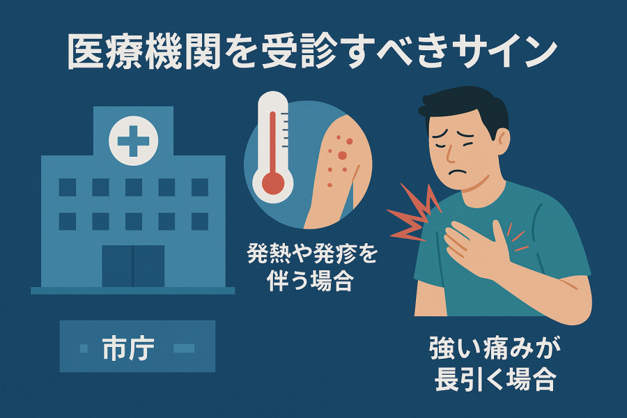 セルフケアはあくまで日常でできるサポート手段です。強い痛みが長引いたり発疹を伴う場合には、早めの相談が望ましいといわれています。