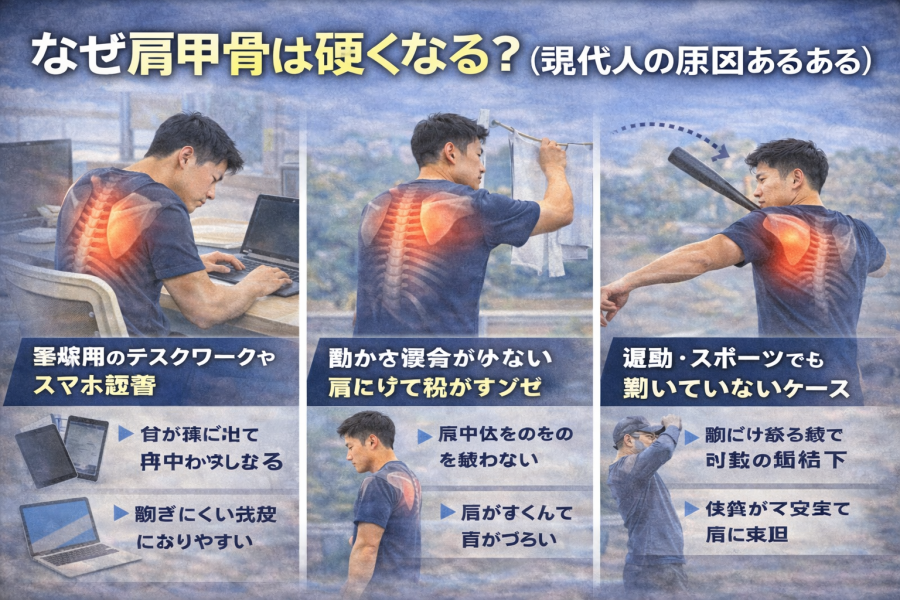 なぜ肩甲骨は硬くなる?(現代人の原因あるある)
