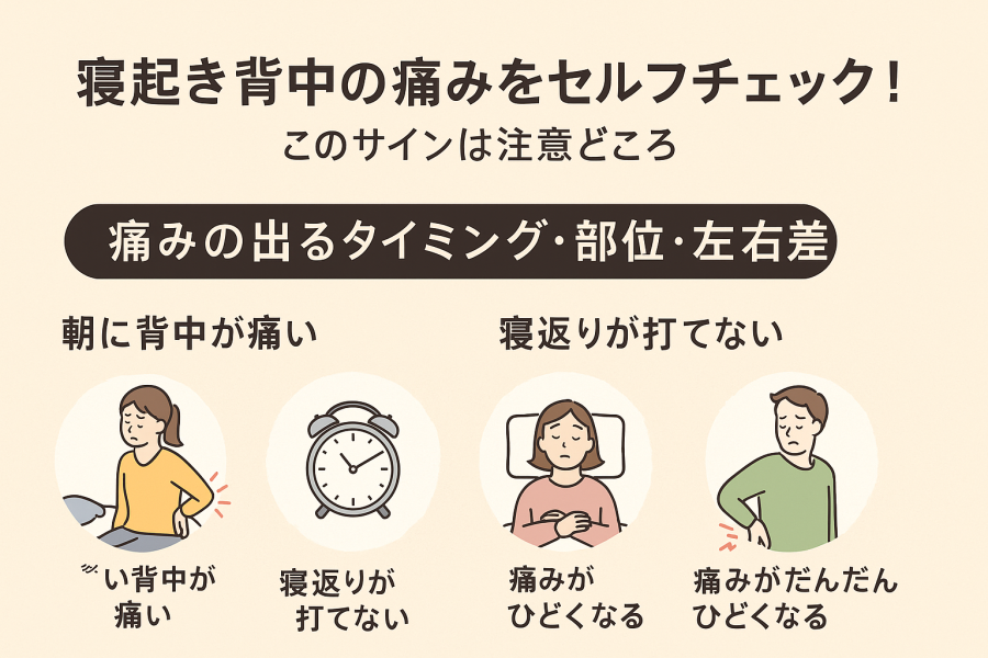 「朝に背中が痛い」「寝返りが打てない」「痛みがだんだんひどくなる」などの警戒シグナル