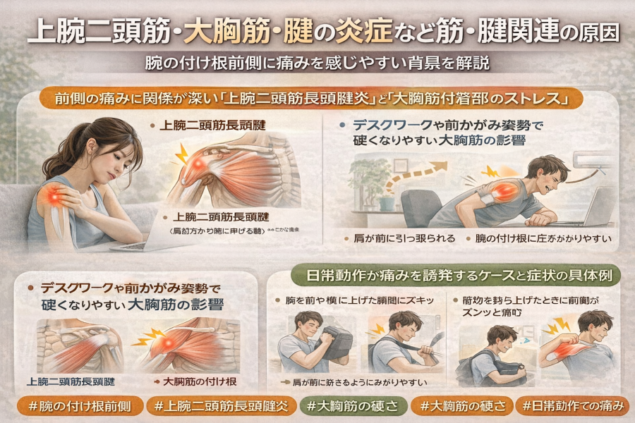 上腕二頭筋・大胸筋・腱の炎症など筋・腱関連の原因