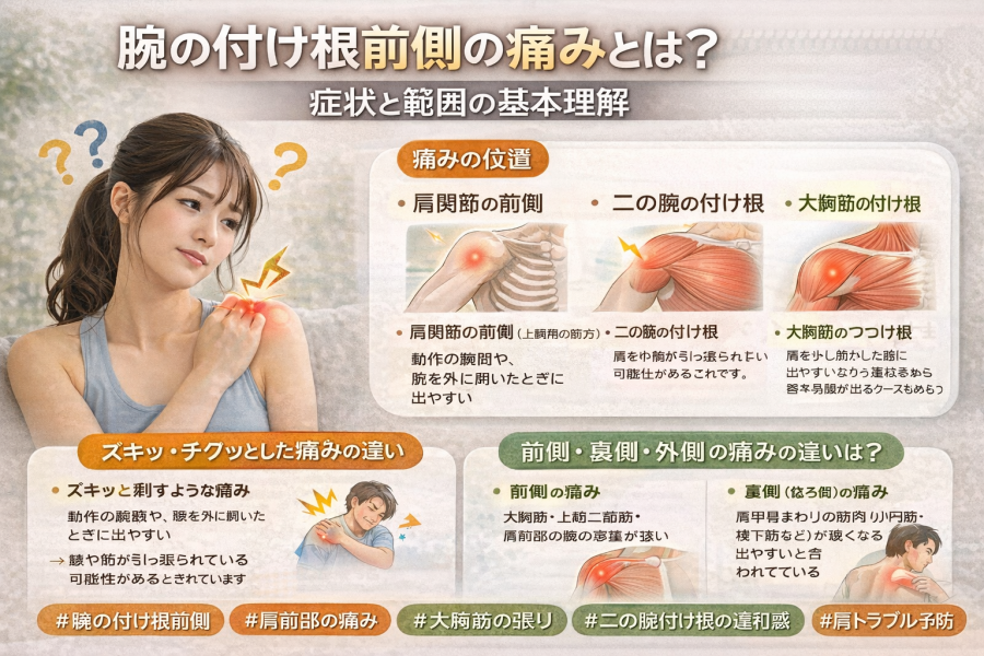 腕の付け根前側の痛みとは?症状と範囲の基本理解