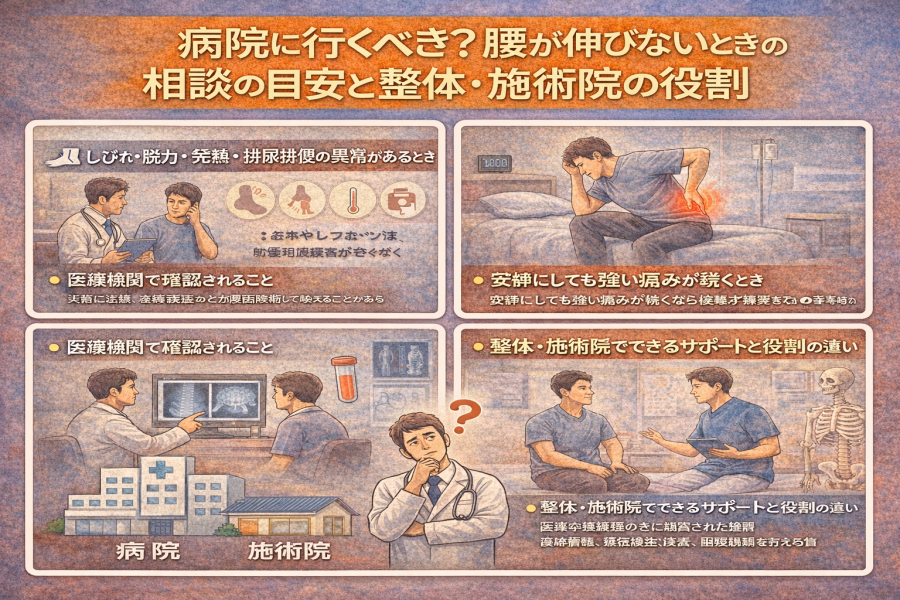 病院に行くべき?腰が伸びないときの相談の目安と整体・施術院の役割