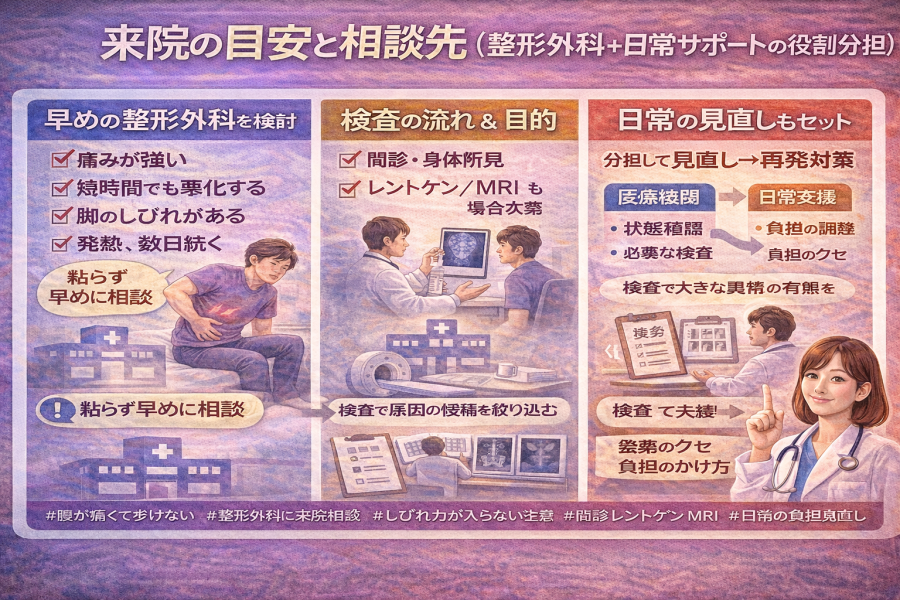 来院の目安と相談先(整形外科+日常サポートの役割分担)