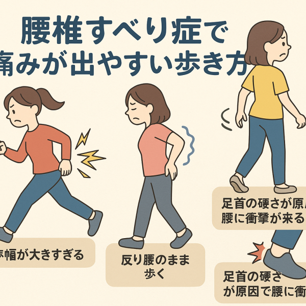 こんな相談を受けることがよくあります。腰椎すべり症の方は歩き方のクセが痛みにつながりやすいと言われていて、少しの工夫でラクに感じる場合もあるようです。ここでは、特に痛みが出やすいパターンを分かりやすく整理してみますね。