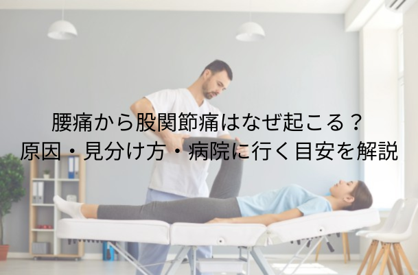 まずは整形外科が基本です。腰由来か股関節由来かを含めて、必要な確認につなげやすいためです。しびれや脱力が強い場合も、まず整形外科で相談し、必要に応じて検査の流れを案内してもらうと整理しやすいです。腰痛から股関節痛が続くときは、自己判断で長引かせず、早めに相談してみてください。