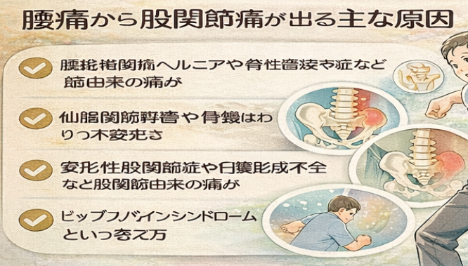 変形性股関節症や臼蓋形成不全など股関節由来の痛み
