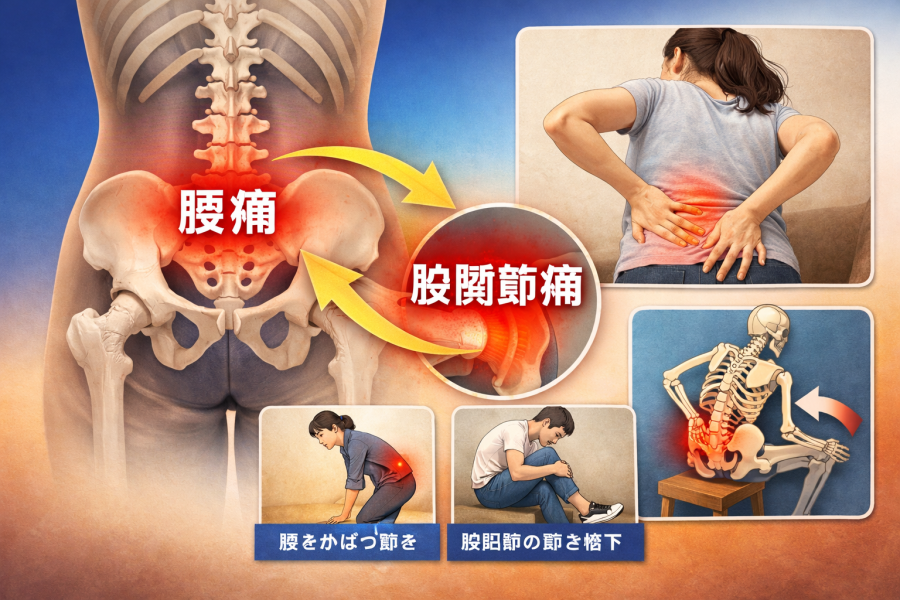 腰をかばう動きが股関節に負担をかけることがある
