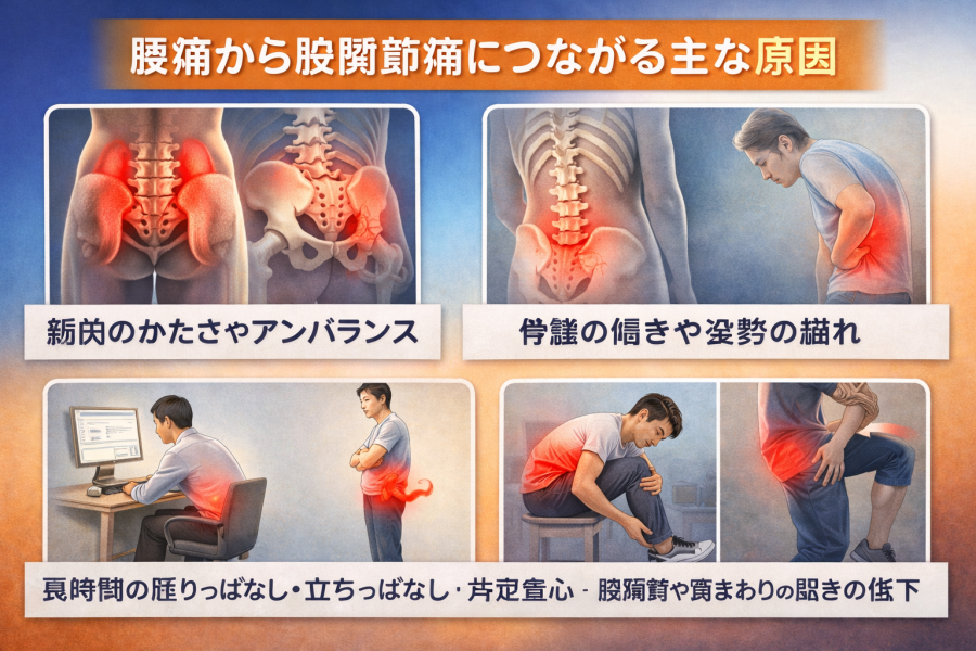 腰痛から股関節痛につながる主な原因