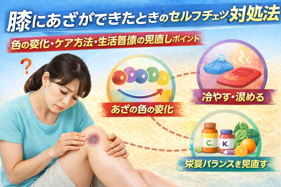 こうして並べてみると、「ぶつけてないのに膝にあざができる」背景は意外と身近なものが多いと感じるかもしれません。毎日の生活の中で気づかない刺激が積み重なっていることもあるので、ほんの少しだけ生活を振り返ってみると、思いあたる場面が見えてくることがありますよ。